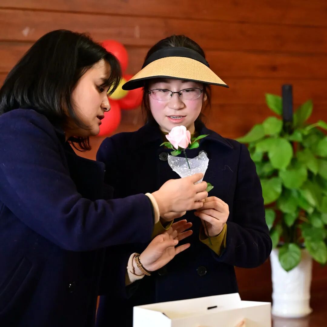 公司为女员工们精心准备了手工课堂,现场气氛非常温馨,一边听着专业老师的讲解,一边动手制作,用巧手展现出不凋谢的美丽,成为春天的一抹亮色。