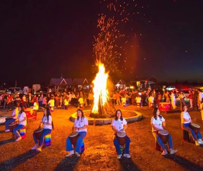 围着火堆载歌载舞
